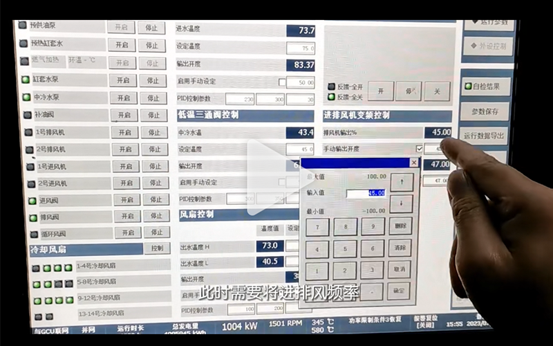 温度高,则空气密度小,单位体积氧含量低。此时需要将进排风频率调节到最大,降低空气温度,增大进气量,以满足发动机和发电机的散热要求和燃烧消耗量。